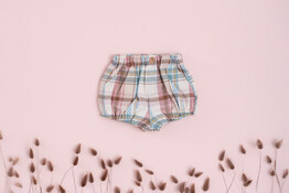Bombacho Tartán Soft Mi Canesú. Estampado: Cuadros escoceses (tartán) en tonos rosa, azul claro y beige. 100% algodón, diseñado para ser suave y cómodo para la piel del bebé.